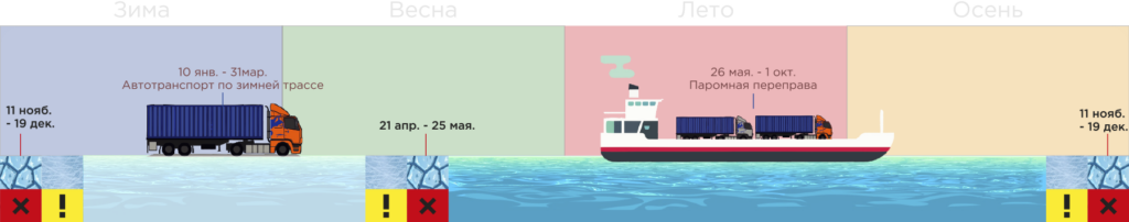 В период летней навигации доступна доставка грузов речным транспортом по реке Лена в отдаленные и труднодоступные населенные пункты Республики Саха (Якутия), при отсутствии возможности использования автомобильных дорог.